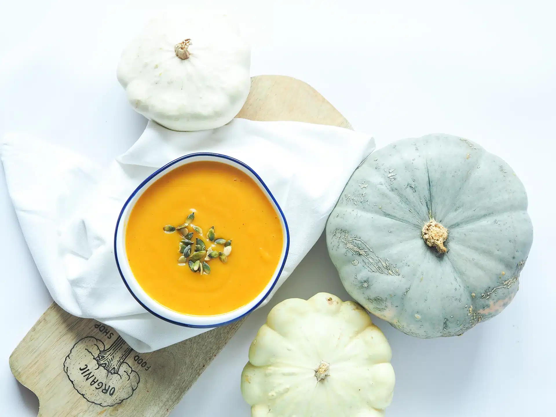 Poniżej znajdziecie przepis na zupę krem z dyni i zupę krem kalafiorowo- patisonowy.